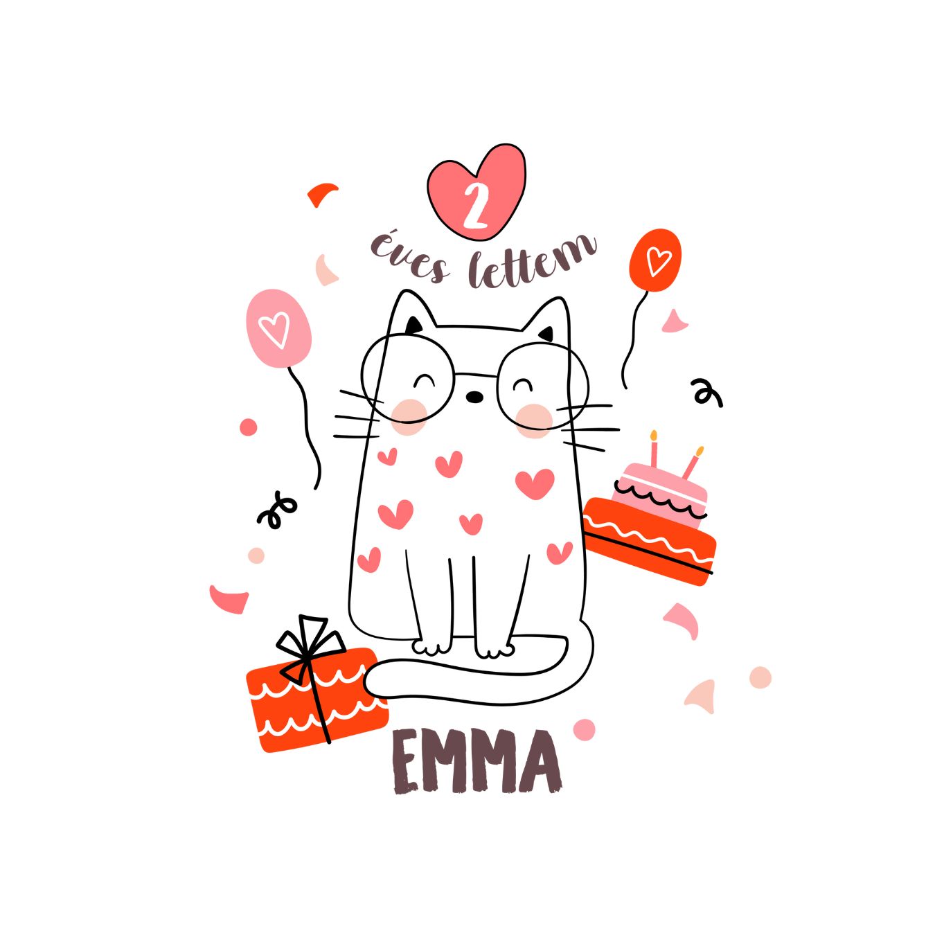 "2 éves szülinapi body cicás mintával saját névvel" leírása