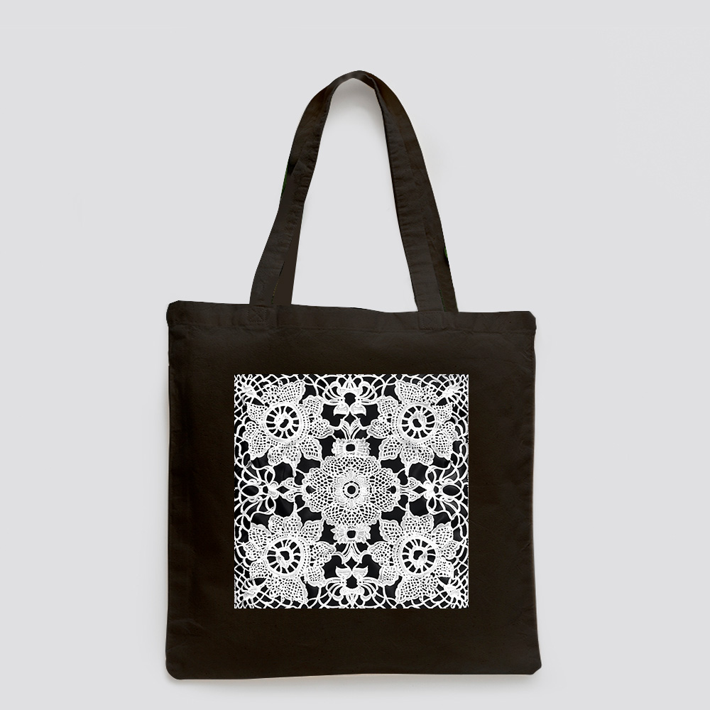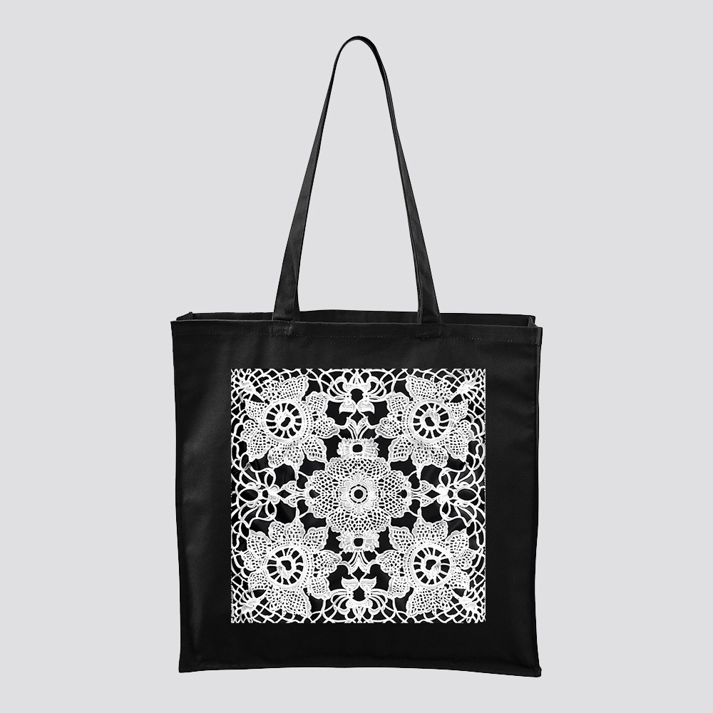 Ez a csipkemintás nyomott vászontáska a hagyományos kézimunka és a modern divat találkozásából született. A csipke részletgazdag, összetett mintázata a kézi munka precizitását és a vintage stílust idézi, míg a fekete alapszín modernebb, urbánus érzetet ad. A kontrasztos fekete-fehér megjelenés vászonnal kombinálva lazán elegáns, könnyen kombinálható bármilyen öltözékkel. Az ilyen típusú minták tökéletesen illeszkednek azokhoz, akik kedvelik a klasszikus mintákat újragondolva.