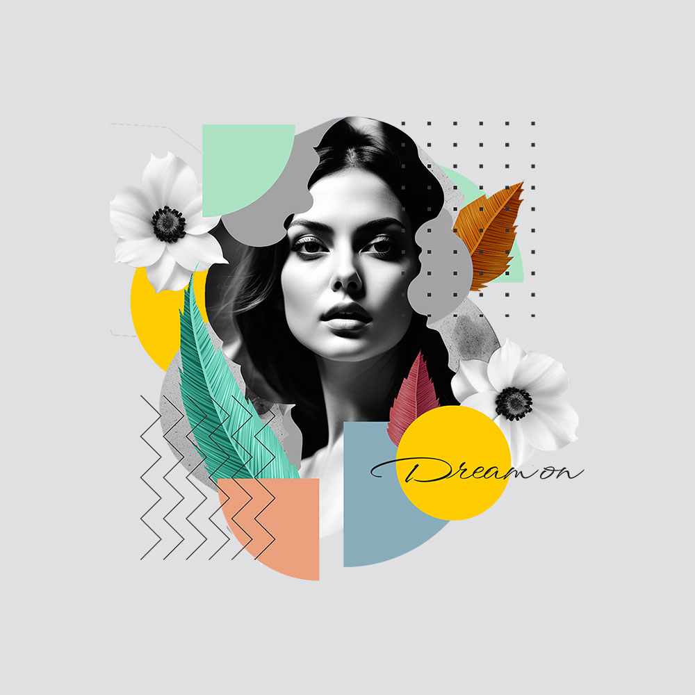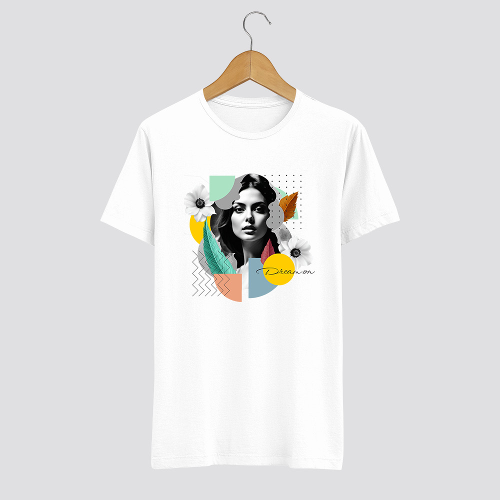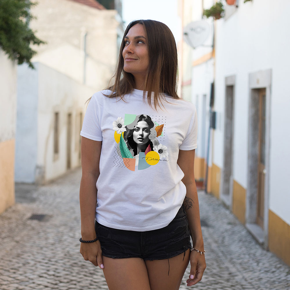 Női kollázs póló absztrakt mintákkal