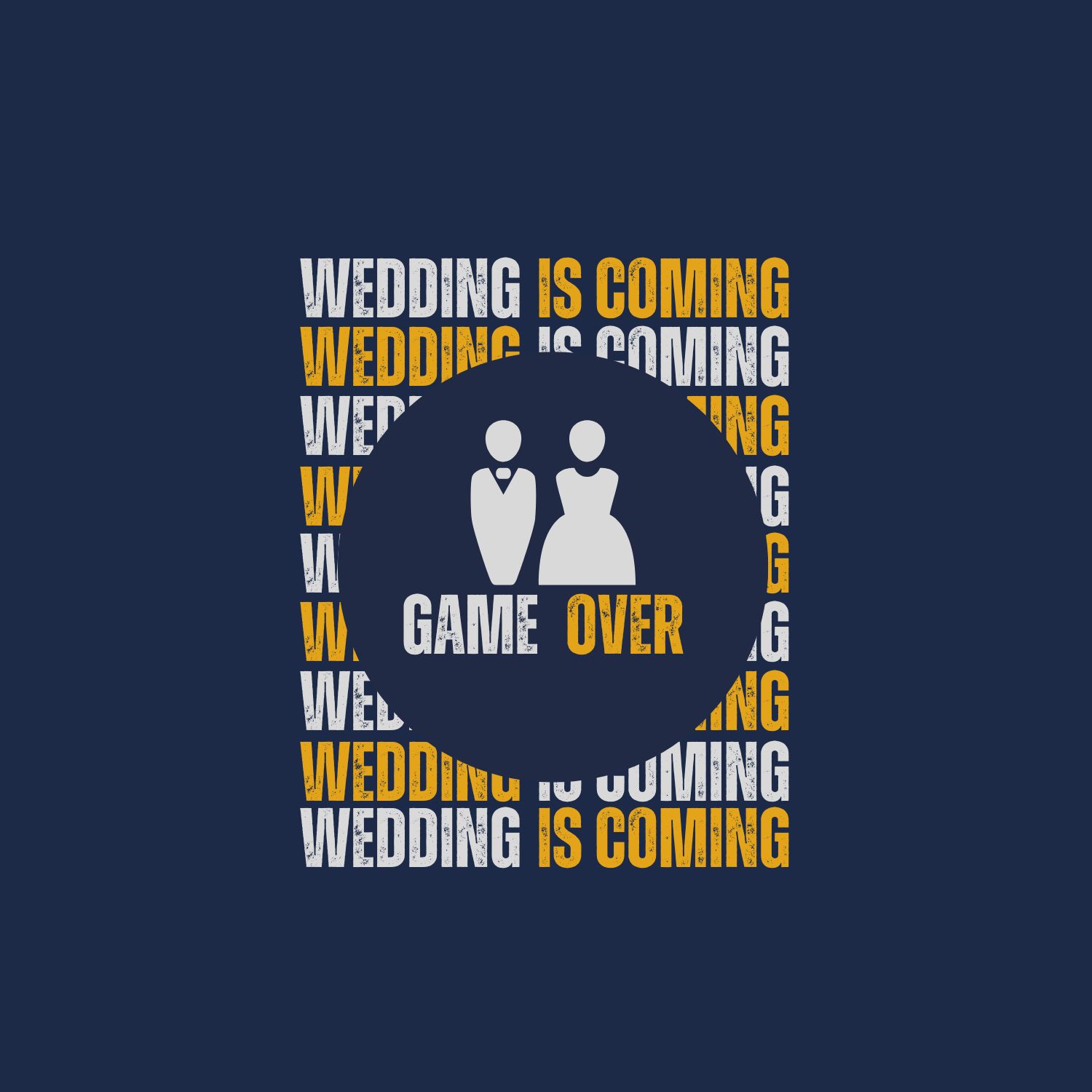 Game Over | Legénybúcsús póló. Felkészültél a nagy napra? Tedd humorossá és emlékezetessé az utolsó szabad éjszakádat a Game Over | Legénybúcsús pólóval! Ez a vicces és figyelemfelkeltő dizájn tökéletes a legénybúcsúkhoz, esküvő előtti bulikhoz. A „GAME OVER” felirat és a házasodni készülő pár ikonikus sziluettje garantáltan mosolyt csal mindenki arcára, míg az ismétlődő „WEDDING IS COMING” felirat emlékeztet a közelgő nagy eseményre.