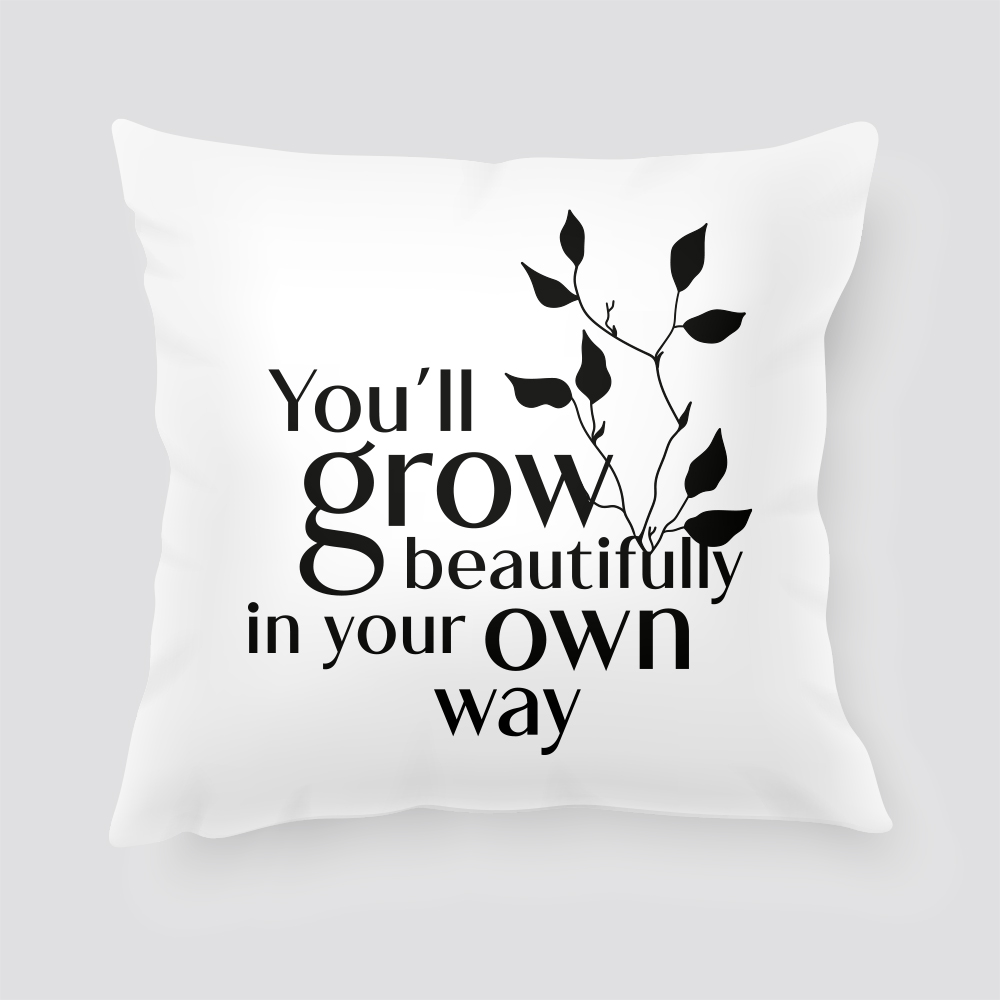 Ez a díszpárna az egyediség és a természetes szépség fontosságára emlékeztet, klasszikus fekete-fehér színkombinációban. A tiszta vonalvezetésű grafika és a mély mondanivalót hordozó szöveg, „”You’ll grow beautifully in your own way””, egyaránt inspiráló és stílusos kiegészítője lehet minden térnek. #egyénivirágzás #feketefehér #inspirációs #díszpárna