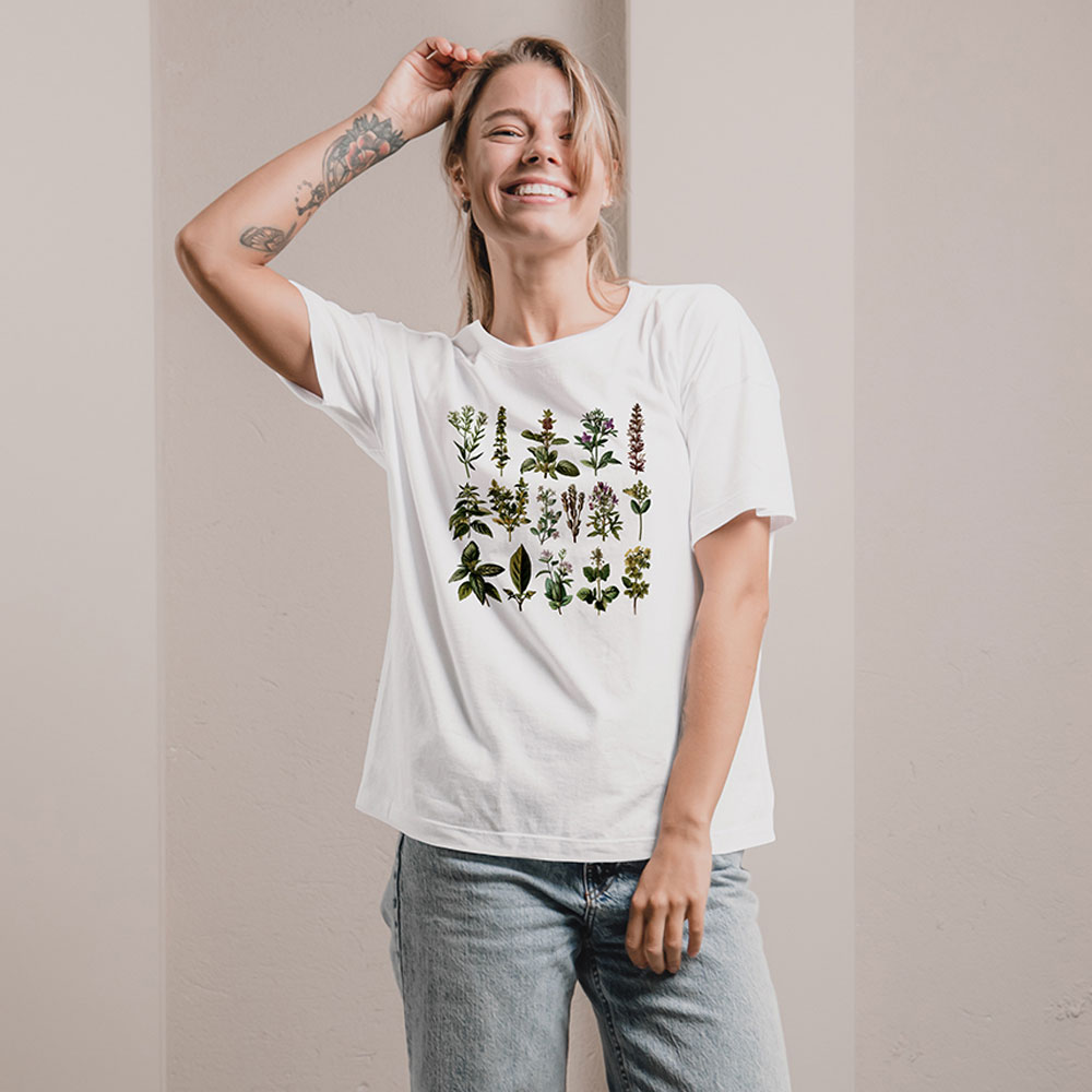 "Herbs | Gyógynövényes póló" anyaga és ápolása