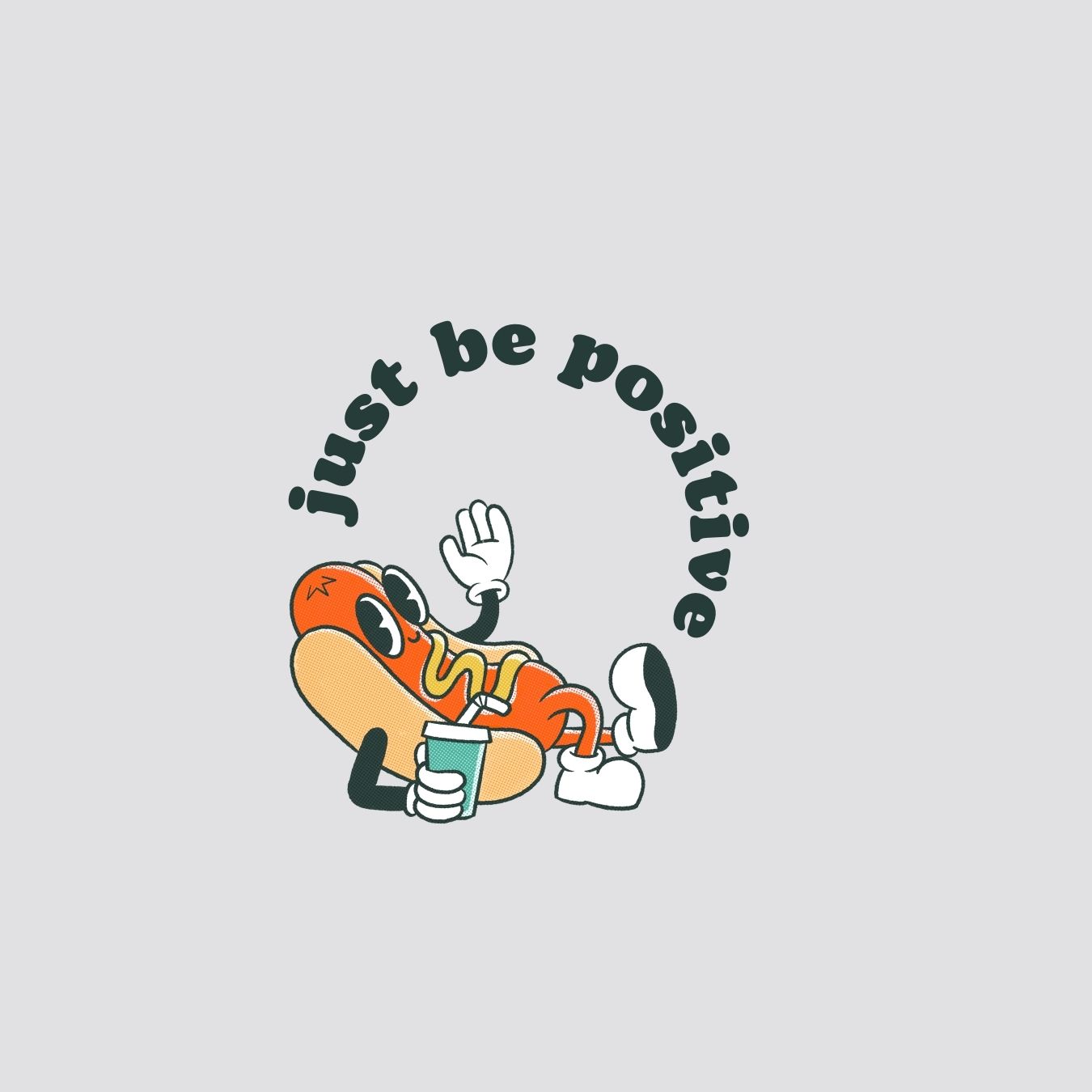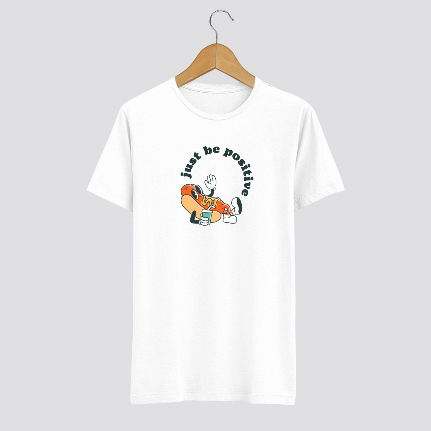 További információk: "Just be positive| Vidám Hot Dog Figurás Póló"