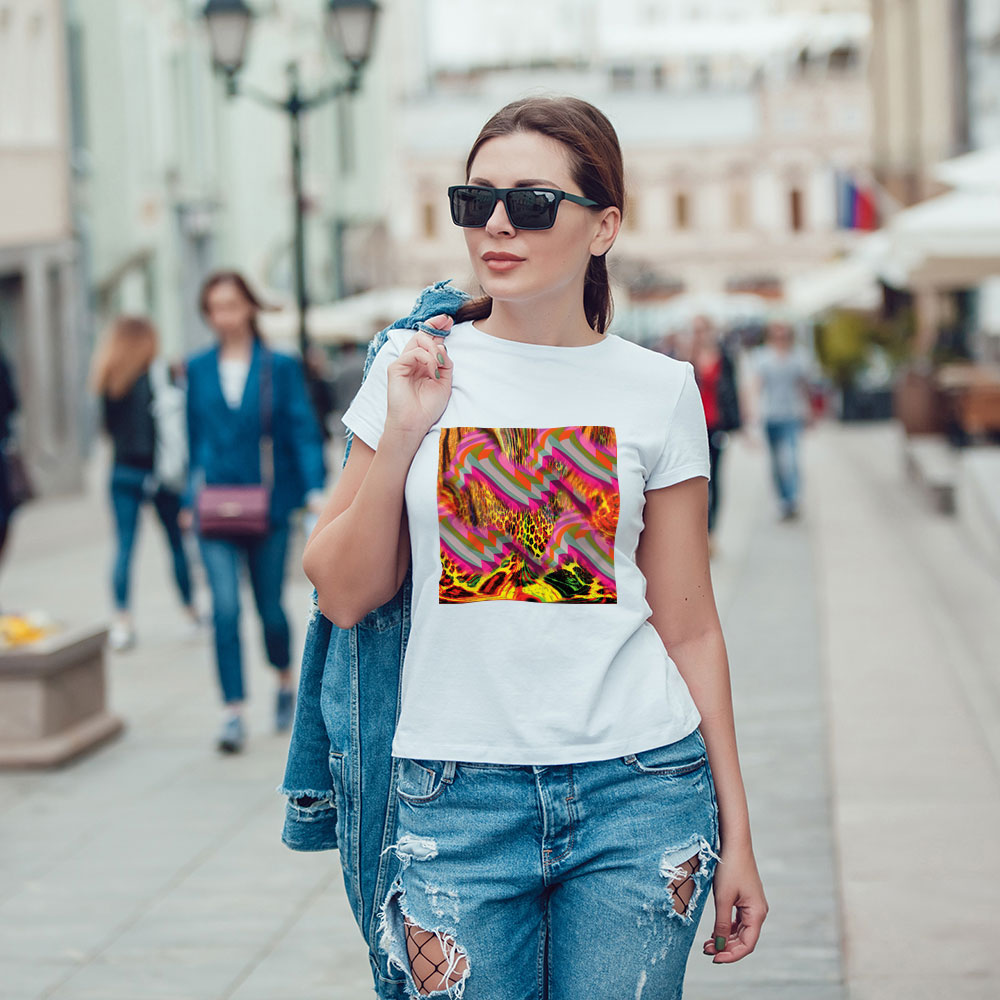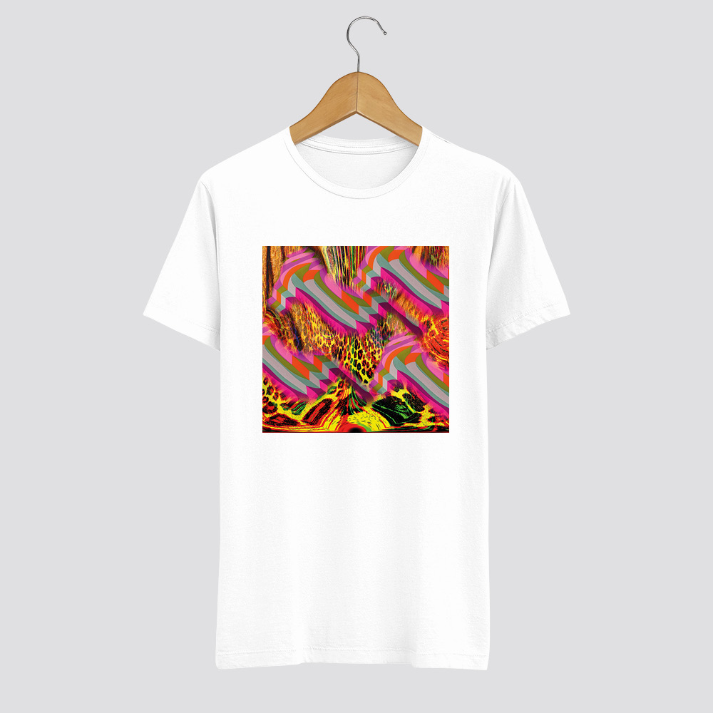 Ez a póló egy igazi vizuális kaland ahol az absztrakt geometriai alakzatok és az állati minták egy optikai örvénybe olvadnak. A vibráló színek és a meglepő formák merész kombinációja felráz mindenkit, akivel találkozol. Ez az energikus, élénk design tökéletes választás azok számára, akik készek kilépni a komfortzónából és egy kis avantgárd bátorságot vinnének az öltözködésükbe.