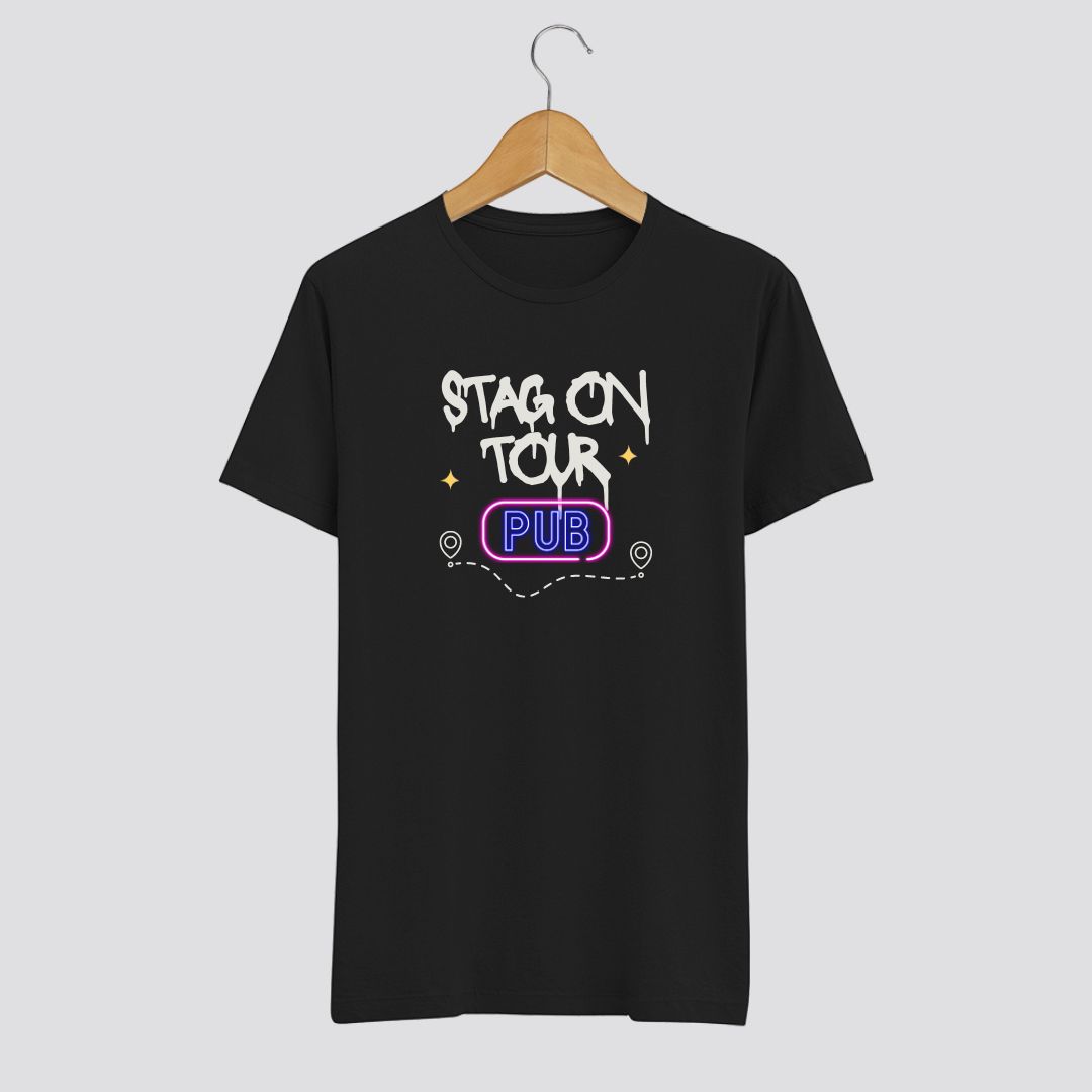 Stag On Tour | Legénybúcsús Póló. Készülj fel a legénybúcsúra stílusosan a „Legénybúcsú Túra” pólóval! Ez a menő és humoros dizájn tökéletes választás minden vőlegénynek és baráti társaságának, akik egy igazán felejthetetlen estét szeretnének együtt tölteni. A „STAG ON TOUR” felirat és a neonszerű „PUB” dizájn garantáltan vonzza majd a figyelmet és mosolyt csal mindenki arcára. A póló szórakoztató és vagány megjelenést biztosít, miközben emlékezetessé teszi a legénybúcsú estéjét.