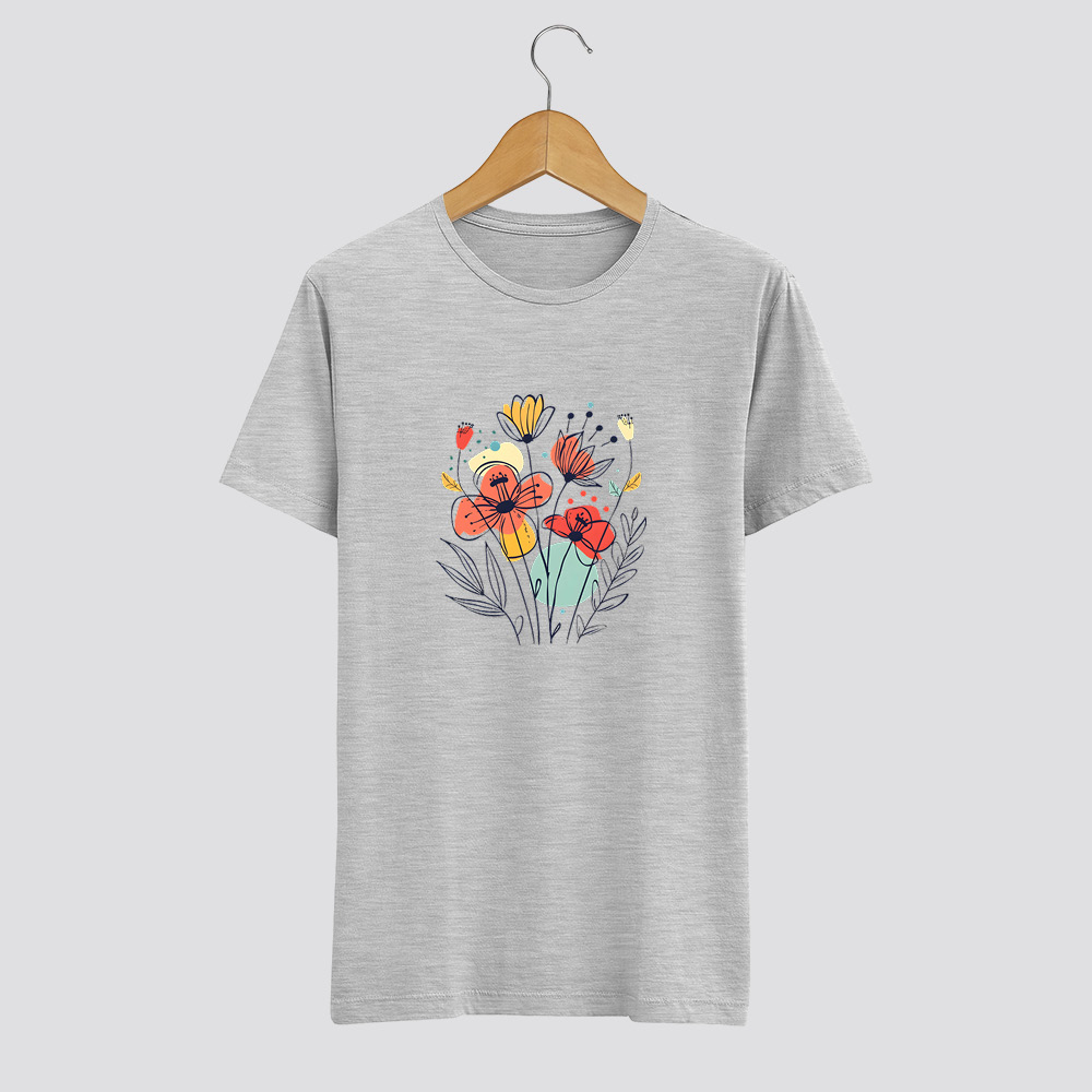 Legyen szép napod ezzel a színes, line art virágmintás pólóval, amely a kézzel rajzolt vonalak játékosságával és a vidám színfoltokkal tölti meg a napodat. A piros, narancs és sárga árnyalatok kombinációja egy friss, élénk kompozíciót alkot, ami könnyed megjelenést biztosít. Ideális viselet ha szereted a virág mintákat és a kézzel készült művészi alkotásokat. #line art, élénk színek, virágminta, természet által inspirált, vidámság, frissesség