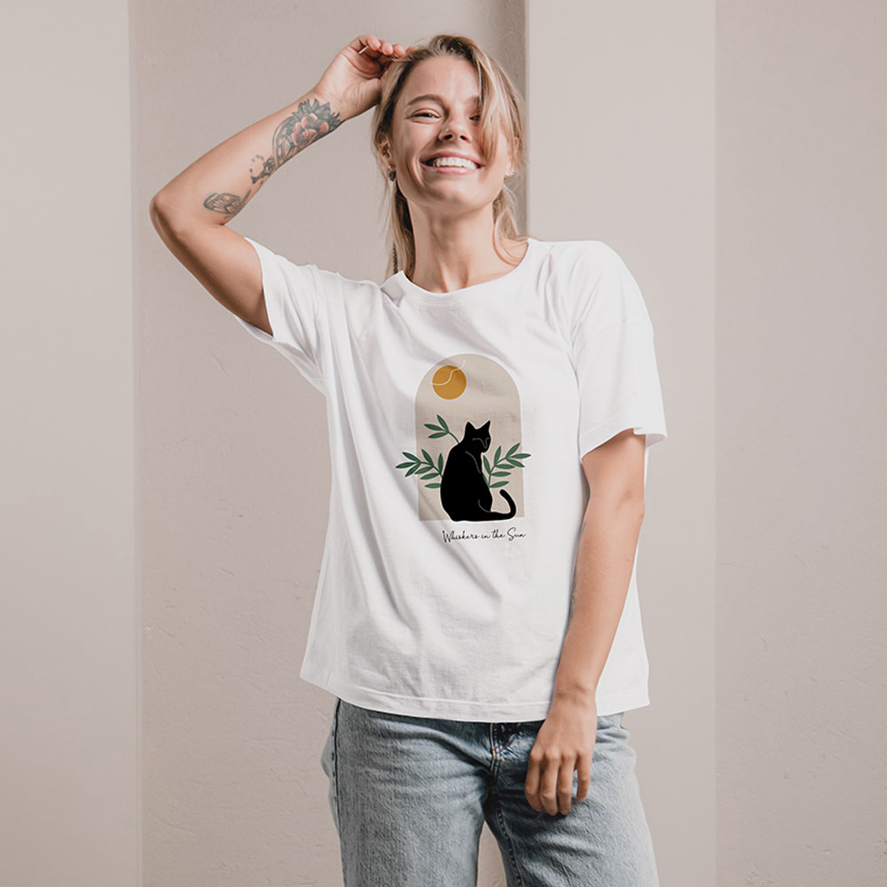 További információk: "Whiskers in the Sun | Macska Sziluettes Póló"